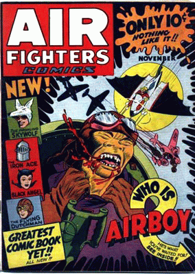 Just so you know not every new publisher had a major success at this time. Some published moderate selling comics and managed to stay in business for years and years. Others simply were a flash in the pan. Among the mix of small to medium sized publishers were Hillman Periodicals (Miracle Comics #1 - 2/40), Novelty Publications aka Curtis Publishing Company (Target Comics #1 - 2/40), Prize Publications (Prize Comics #1 - 3/40), Columbia Comics Group (Big Shot Comics #1 - 5/40), Ace Magazines (Sure-Fire Comics #1 - 6/40). Some of these companies did make significant contributions though. Hillman Publications produced a character called Air Boy in Air Fighters Comics #2 whom would stay in print for a long time and even come back during the 80's. In Air Fighters Comics #3 would appear The Heap, comics first "muck monster." He would inspire many monster style superhero characters in the future.