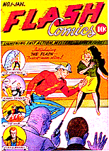 The second was Barry Allen, who gained his powers when a lighting bolt smashed through a window and hit a bookshelf that had a every chemical known on it. The chemicals splashed on Barry, making him the fastest man alive... or almost. The Silver-Age Flash had two races with Superman to see who was the fastest. Both races ended up in ties. But boy, what speed did Barry have! He could run so fast that he could travel to the future, or go back in time. He could also vibrate through walls. He would do this by vibrating his molecules so fast he could pass in between the molecules in the walls. His comic had a significant event in comic book history, because in Flash #123 the Golden Age Flash and the Silver Age Flash meet. This meeting would have consequences that would lead to Barry's death, and many more changes in the DC universe. Go back to the Main Page and read about Flash #123 in detail, under the 1986 Crisis of the Infinite Earths storyline.